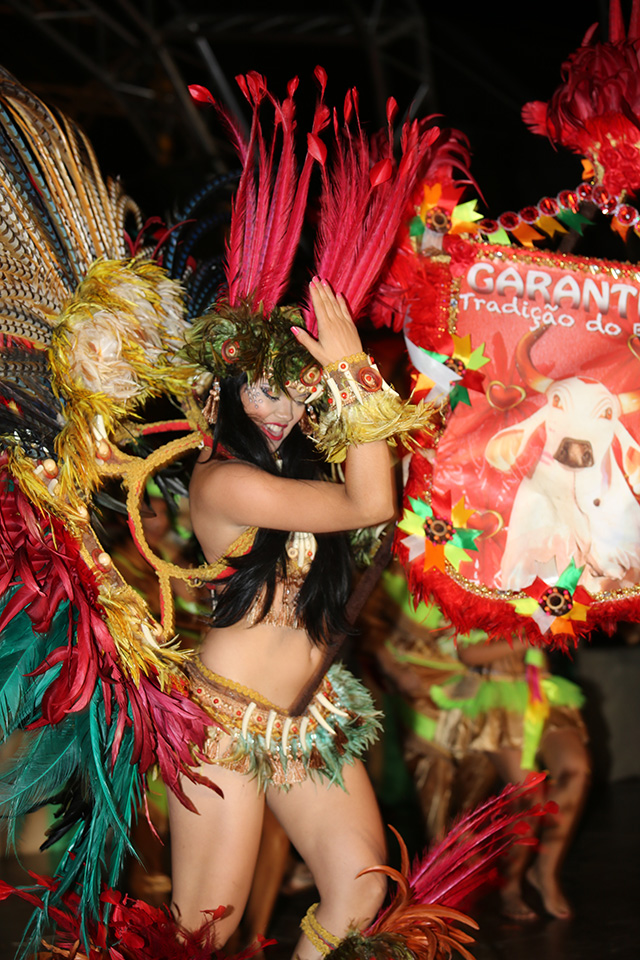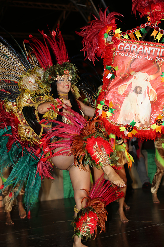 A porta-estandarte do Boi Garantido é a parintinense Verena Assis. Filha de família tradicional de torcedores do Garantido, a nova musa do bumbá tem 18 anos.