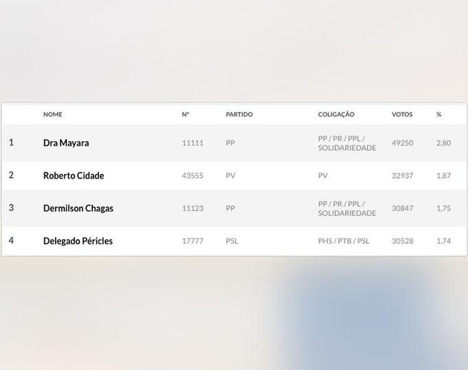 Vale ressaltar que pelo sistema de voto de legenda, a lista de eleitos para o cargo não é dada pelo quantidade de votos obtidos por cada um