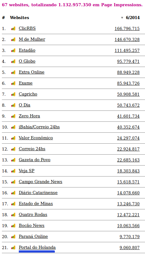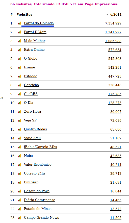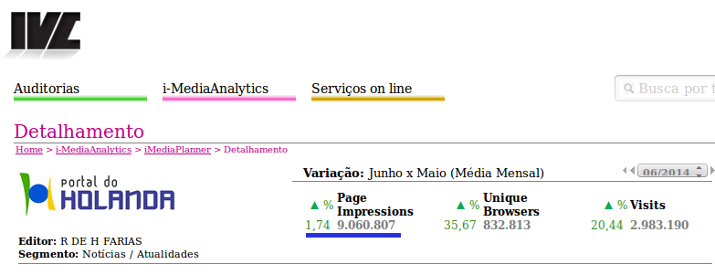 O Portal do jornal Acritica, que não é auditado pelo IVC, mas pelo Ibope, contabiliza, segundo o site do Uol,onde está hospedado, menos da metade dos acessos do Portal do Holanda, conforme você pode conferir abaixo.