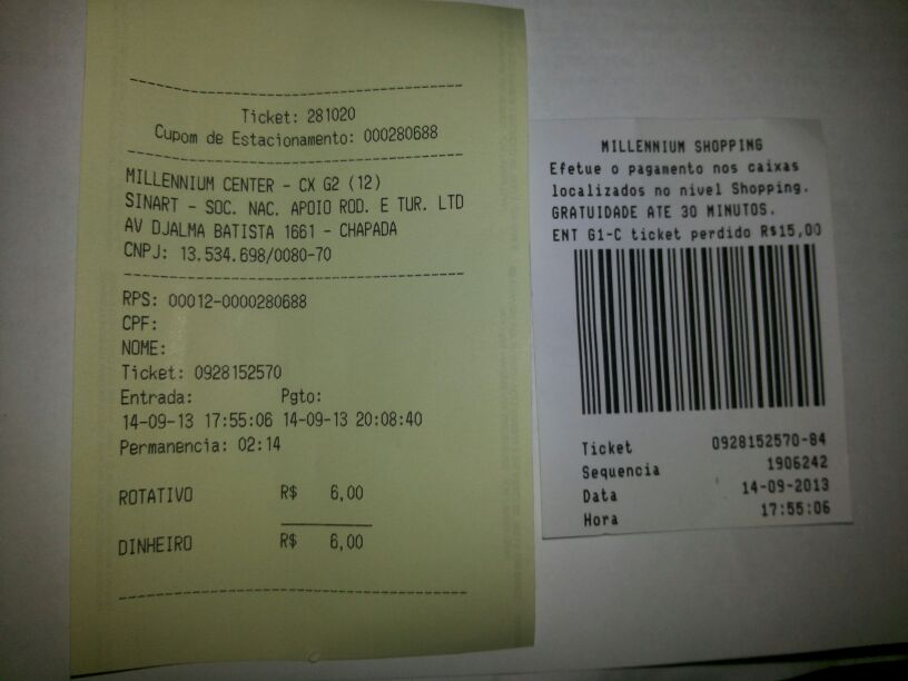 Depois da lei que disciplina a permanência de carros nos estacionamentos da cidade, ninguém respeita mais regras e a cobrança passou a ser feita a critério de cada gerenciador desses parqueamentos. Exemplo disso é o Shopping Millenium, onde um leitor do Portal do Holanda passou 2hs 14m e pagou R$ 6, que é o valor de 4 horas. Veja a comprovação.