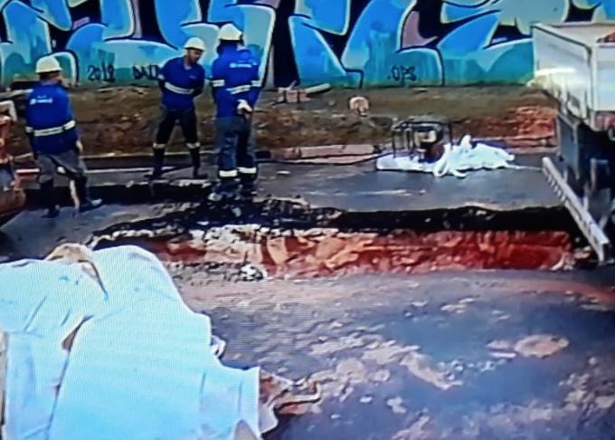 Manaus/AM - O rompimento de uma tubulação fez surgir uma cratera no fim da avenida Desembargador João Machado, antiga Franceses, no bairro Alvorada, na Zona Centro-Oeste, nessa terça-feira (4).