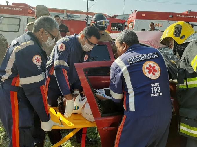 Manaus/AM - Um menino de três anos teve a cabeça quebrada e um casal sofreu fraturas pelo corpo durante uma colisão grave na manhã desse domingo (1), na Alameda Cosme Ferreira, no bairro Coroado, Zona Leste.