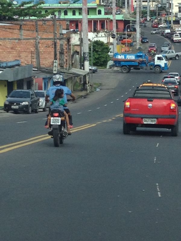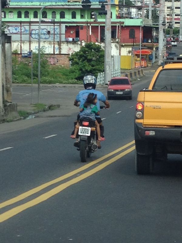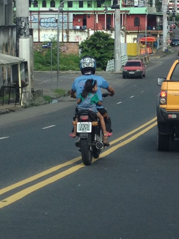 As imagens foram enviadas por Whatsapp por uma leitora. Conforme ela, o motociclista vinha buzinando e ultrapassando os carros inclusive na contra mão como mostram as imagens, aumentando ainda mais o risco que a criança sem capacete corria. "Ela nem conseguia segurar o homem direito de tão acelerado", completou.