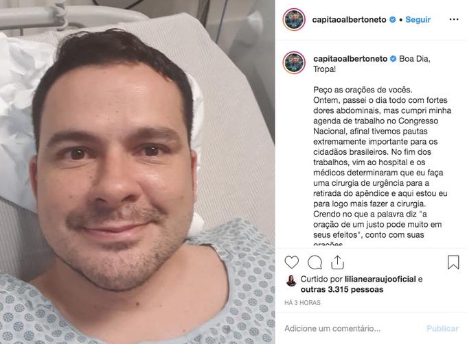 Manaus/AM - Após sentir fortes dores abdominais na última quarta-feira (4), o deputado federal do Amazonas, Alberto Neto, precisou ser internado para realizar cirurgia de emergência em hospital de Brasília. Por meio das redes sociais, o parlamentar informou que o procedimento será para a retirada do apêndice.