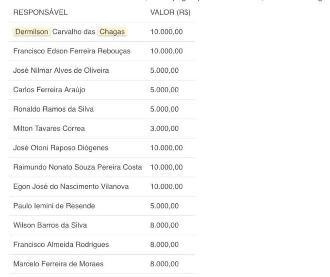 Além de Dermilson, mais 12 pessoas foram multadas pelo TCU.