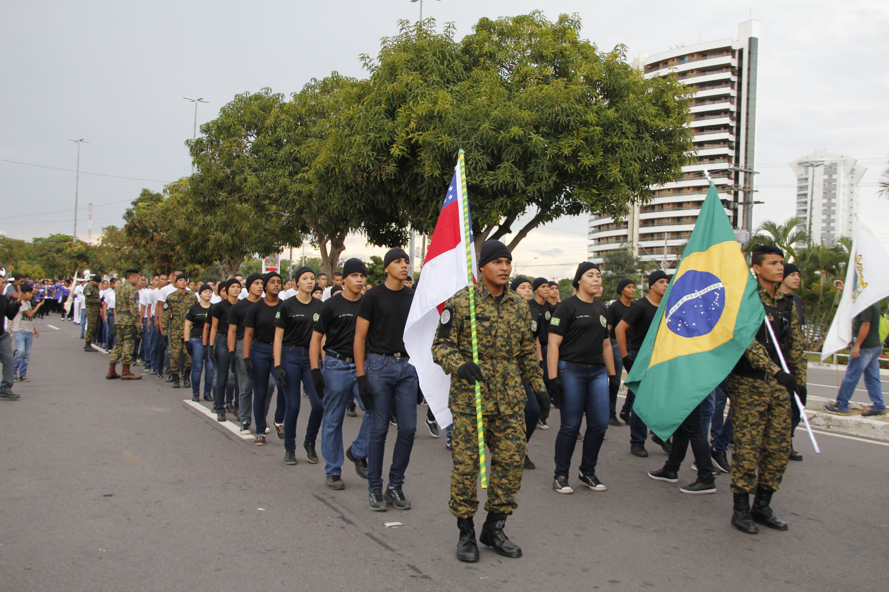 Os 2,6 mil estudantes e aproximadamente 400 educadores são de 147 escolas municipais, que desfilaram divididos em pavilhão e dez pelotões por 700 metros da Av. Coronel Teixeira. Representantes da Marinha do Brasil, por meio do 9° Distrito Naval, também desfilaram.