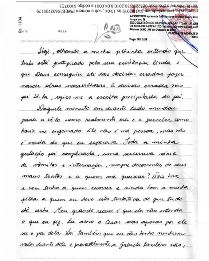 Familiares de Lorena confirmaram a veracidade do documento, que inclusive será usado como prova no dia do julgamento do dentista. Familiares afirmam ainda que Lorena chegou a registrar um Boletim de Ocorrência de uma das agressões que sofreu, meses antes do crime ser cometido. Confira: