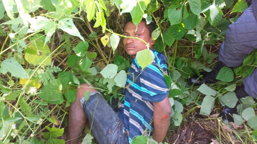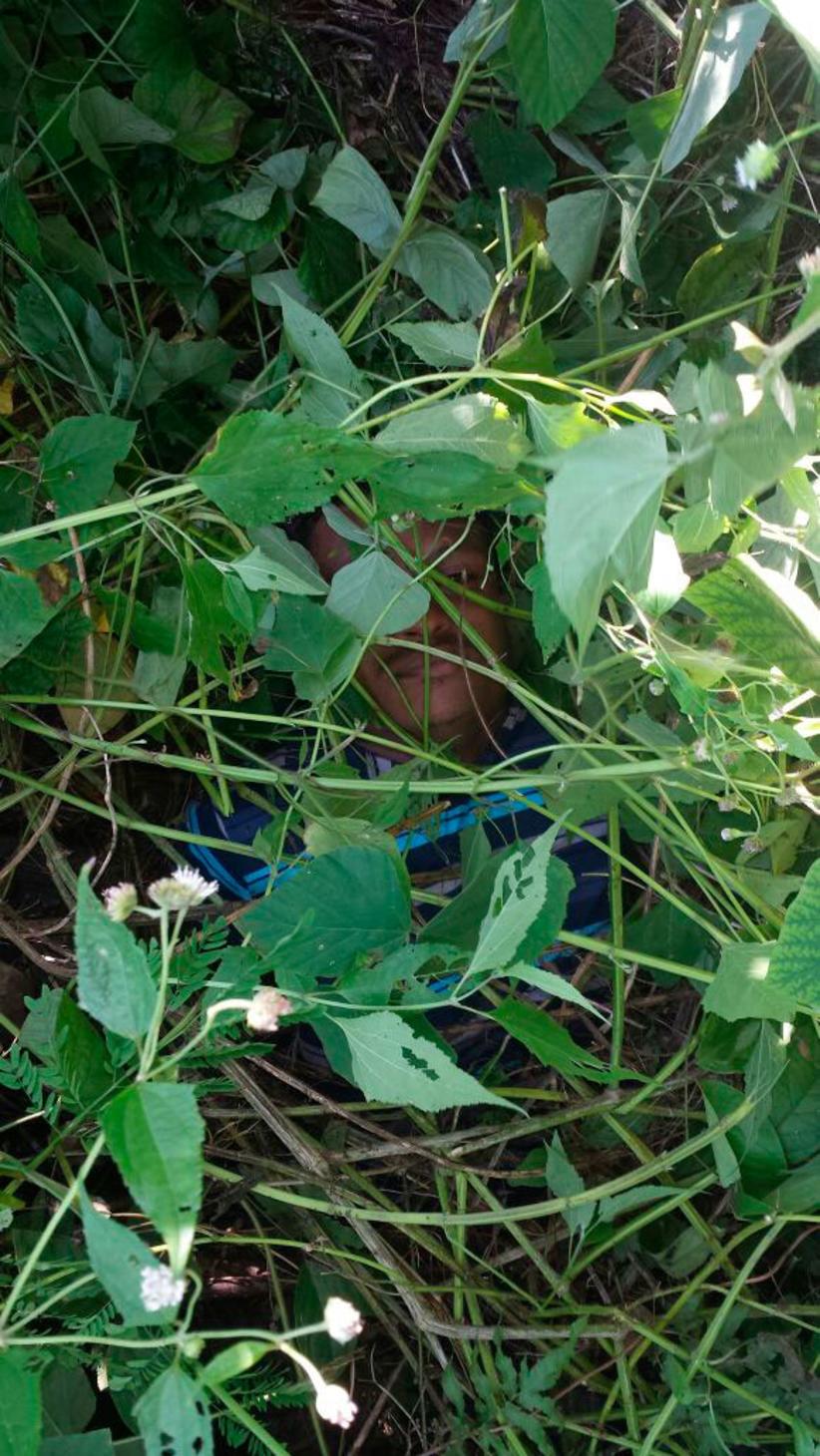 Os policiais fizeram buscas pela área e conseguiram efetuar a prisão do infrator preso entre arbustos, somente com o rosto de fora.