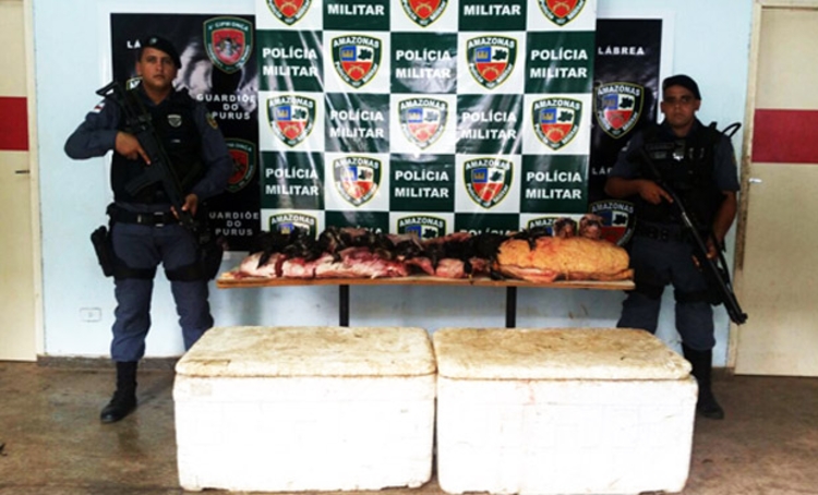 Policiais Militares da Companhia Independente da Policia Militar – 4º CIPM/ Lábrea, apreenderam, terça-feira, pela manhã, mais de 200 quilos de carne de animais silvestres. O material estava armazenado e pronto para ser comercializado na residência de Francisco Eliude, 49 anos, na rua Nova, bairro Vila Falcão, na sede do município.