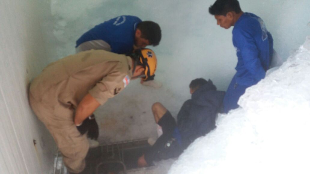 Manaus/Am - Um homem identificado como Jhonatn Arcos da Silva de 25 anos precisou ser resgatado por uma equipe do Corpo de Bombeiros, após ficar com a perna presa em uma maquina de cortar gelo. A acidente aconteceu na manhã desta quarta-feira (28), nas proximidades da Feira da Panair, no bairro Educandos, Zona Sul da capital.
