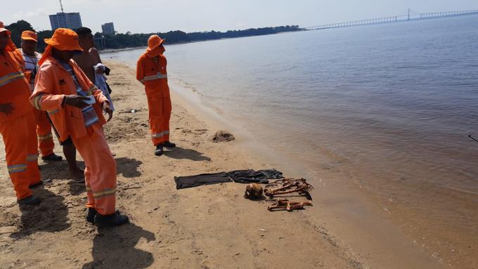 Segundo um guarda municipal que acompanhou o encontro, com os restos mortais também foram achados roupas masculinas. Os ossos estavam nas proximidades do Anfiteatro e surgiram com a descida das águas.