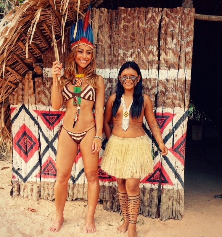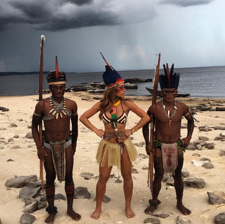 Sabrina Sato está no Amazonas nesta quarta-feira (27) posou vestida a caráter ao lado da tribo indígena Dessana, às margens do Rio Negro em Manaus.