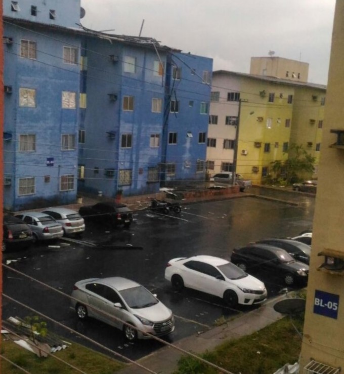 Manaus/AM - Moradores do Conjunto Residencial Viver Melhor III, relatam que viveram momentos de desespero durante o temporal da madrugada desta terça-feira (12), em Manaus. Além do apagão no local que fica localizado no bairro Cidade de Deus, Zona Norte, telhados foram arremessados nos carros que estavam estacionados e segundos, eles a estrutura dos prédios chegou a tremer causando pânico geral.