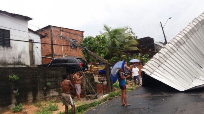Na rua Jericó, no bairro Novo Aleixo, o cenário também é de devastação. Muitas casas tiveram o teto totalmente arrancado, postes de energia elétrica tombaram sobre muros e veículos, confira as imagens: