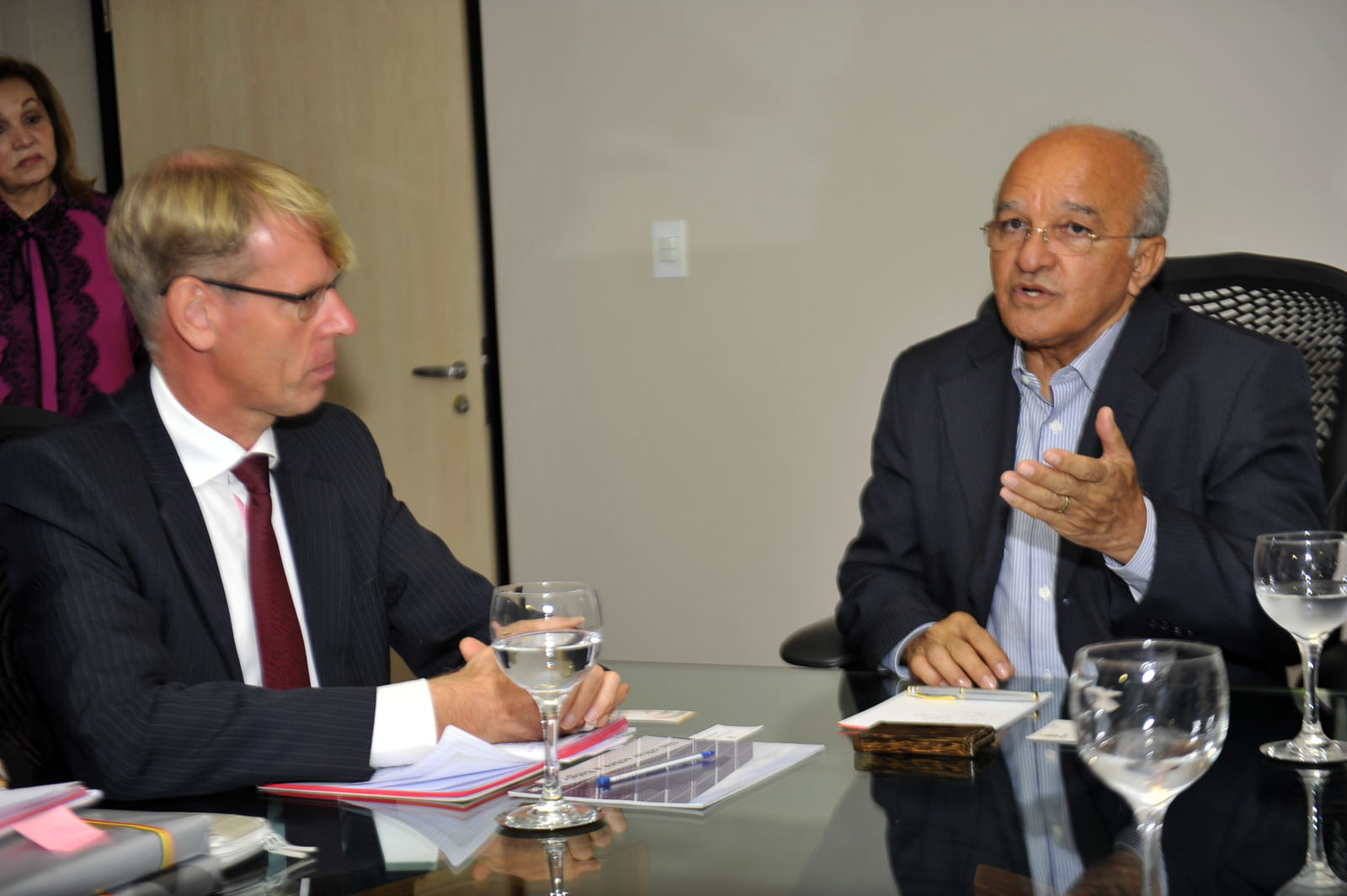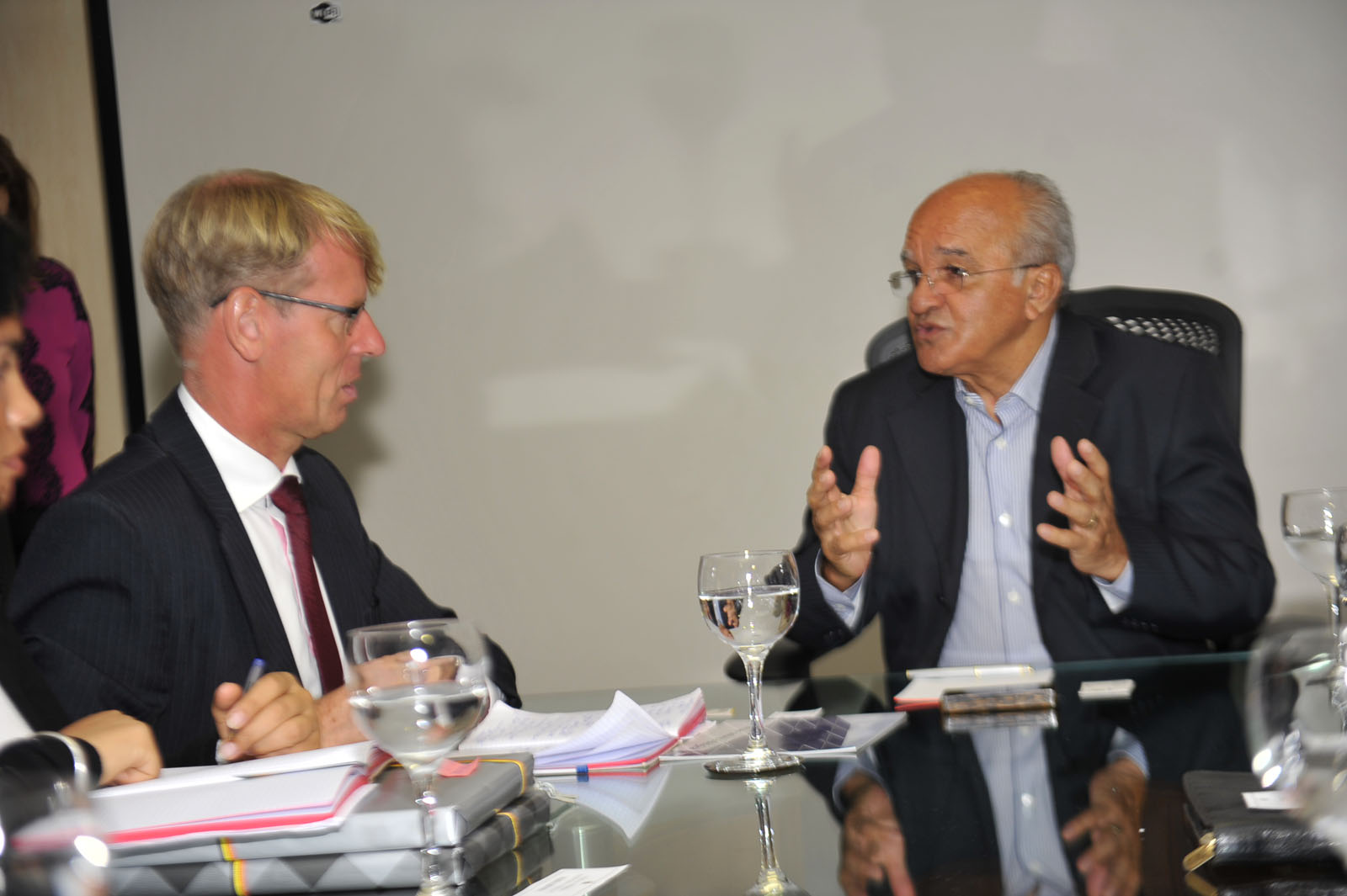 O governador do Estado, José Melo, recebeu a visita do embaixador da Bélgica, Jozef Smets. Acompanhado do cônsul do Bélgica no Amazonas, Hugo Deschoolmeester, o embaixador recebeu uma série de informações sobre a economia, cultura e turismo do Estado e demonstrou interesse em firmar acordos nos setores de portos, hidrovias e ciência e tecnologia.