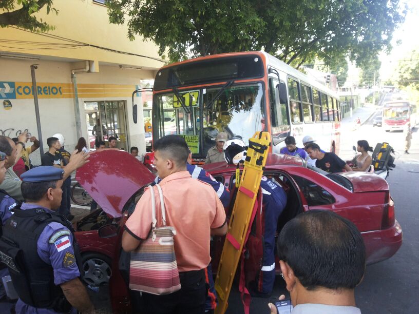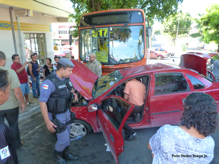 A enfermeira Silvana Osmarina de Andrade, 35 anos, cruzou o sinal vermelho na Avenida Costa e Silva com a rua Carvalho Leal, na Cachoeirinha e ficou presa entre as ferragens do Corsa sedan vermelho, placa NOI 7883, ao colidir com o ônibus da linha 517, que trafegava em alta velocidade. Osmarina foi retirada do veículo por uma equipe do Samu. Ela apresentou lesão grave na cabeça e foi encaminhada para o Pronto Socorro João Lúcio.
