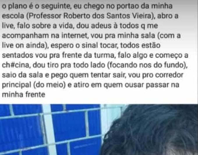Manaus/AM - Um rapaz que se identifica como aluno da Escola Professor Roberto dos Santos Vieira, localizada bairro Nova Cidade, usou as redes sociais para anunciar seus planos de realizar uma chacina na instituição.