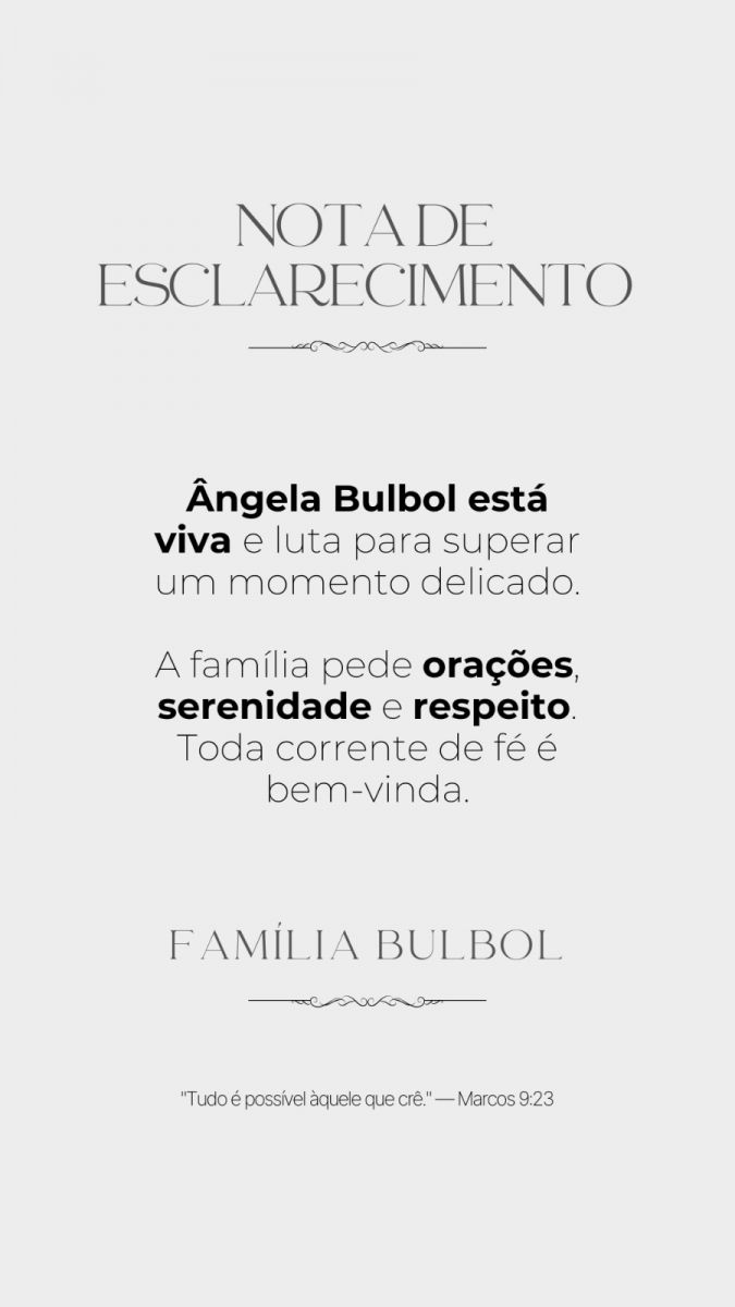 Manaus/AM - A família da ex-gestora pública Angela Neves Bulbol de Lima emitiu uma nota oficial na noite desta sexta-feira (20), esclarecendo que ela permanece viva e sob cuidados médicos.