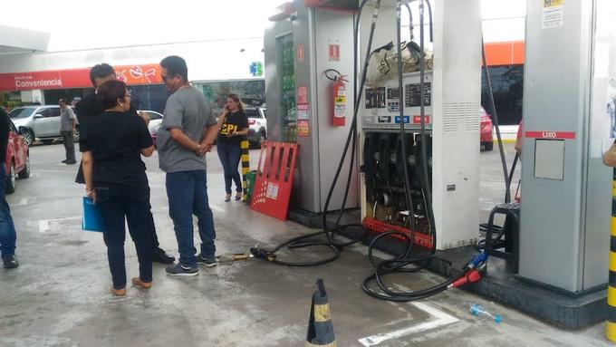 No primeiro posto foi identificada diferença na placa com o preço de combustível e o preço efetivamente marcado na bomba, enquanto no segundo posto uma das bombas não tinha lacre.