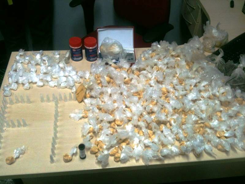 Na casa de Francisco, a polícia encontrou pasta base de cocaína, cocaína, oxi e maconha, uma balança de precisão, material para mistura e embalagem de entorpecentes.