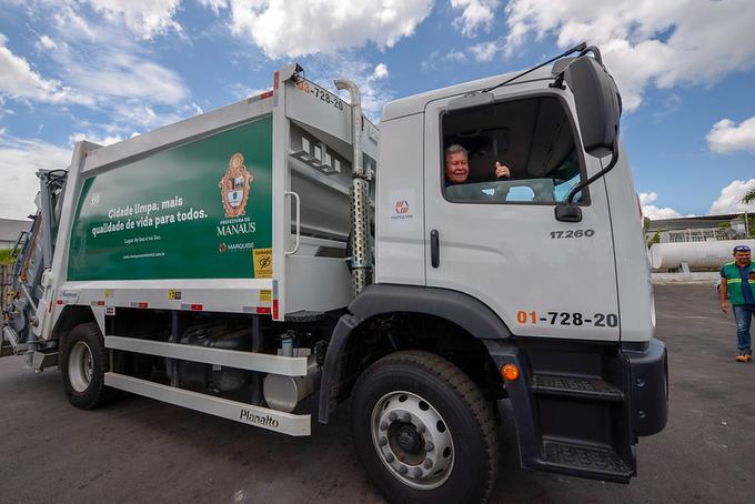 Manaus/AM - A coleta de lixo domiciliar será reforçada com a integração de 11 novos carros coletores à frota de veículos que atua nesse serviço. Na segunda-feira, 9/12, a Prefeitura de Manaus recebeu os novos veículos modernos e climatizados, estando no nível máximo de desempenho na categoria, adquiridos pela empresa concessionária Marquise e entregues pelo prefeito de Manaus, Arthur Virgílio Neto, à Secretaria Municipal de Limpeza Urbana (Semulsp). Em julho deste ano, outros 12 carros foram entregues aos Sistema de Limpeza Urbana, renovando e reforçando a frota.