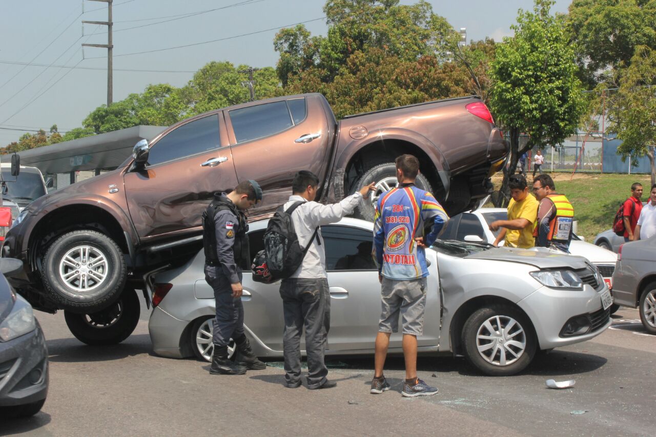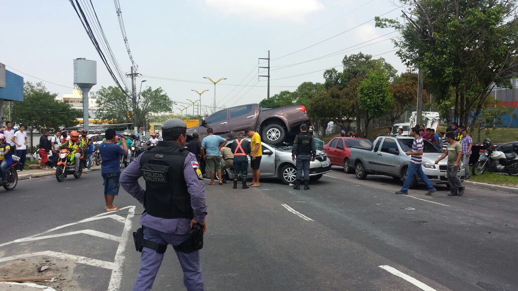 Início Amazonas GALERIA DE FOTOS: Acidente inexplicável em Manaus com quatro veículos