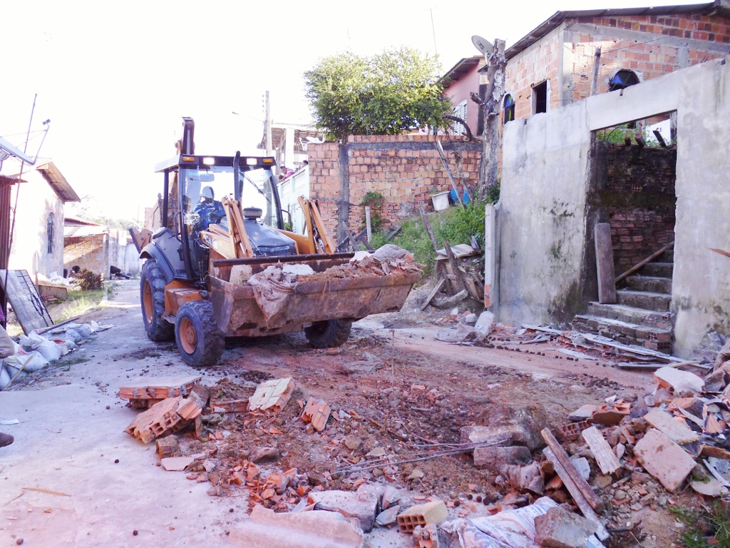Em operação realizada pela Divisão de Controle, com apoio das Secretarias Municipais de Infraestrutura e Limpeza e da Guarda Municipal, a garagem localizada no meio da via, na rua Anchieta, bairro Grande Vitória, foi demolida retornando o lote ao tamanho original assim como o passeio público. Segundo levantamento técnico do Implurb, a faixa de rolamento na Anchieta é de 7,60 metros, mas no local foi constatado o espaço de apenas 3,36m, em razão da ocupação irregular e obstrução.