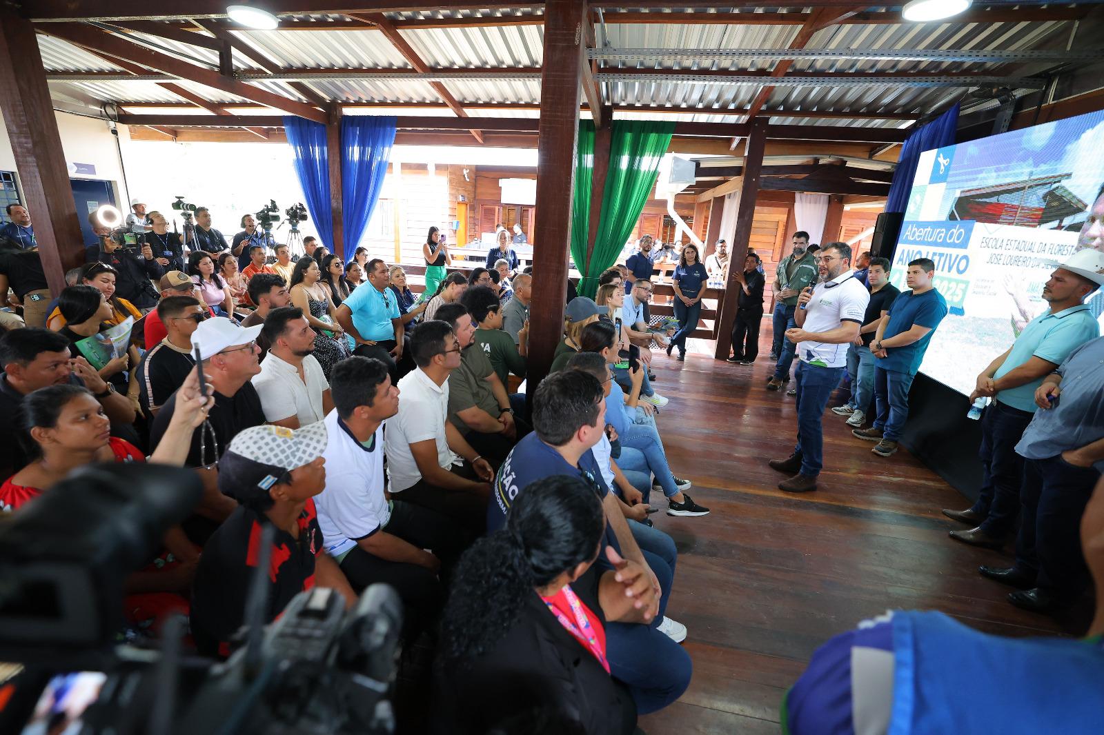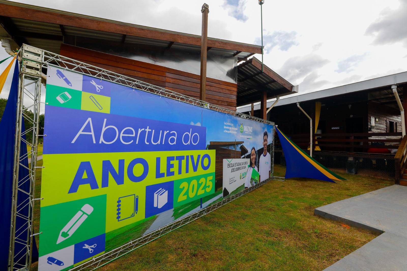 A programação do ano letivo de 2025 na rede estadual do Amazonas foi iniciada pelo governador Wilson Lima na Escola Estadual da Floresta (EEF) José Loureiro da Silva, em São Sebastião do Uatumã, nesta terça-feira (04). A Escola da Floresta faz parte do Programa Educa+Amazonas e está situada na comunidade Bom Jesus, dentro da Reserva de Desenvolvimento Sustentável (RDS) do Uatumã.