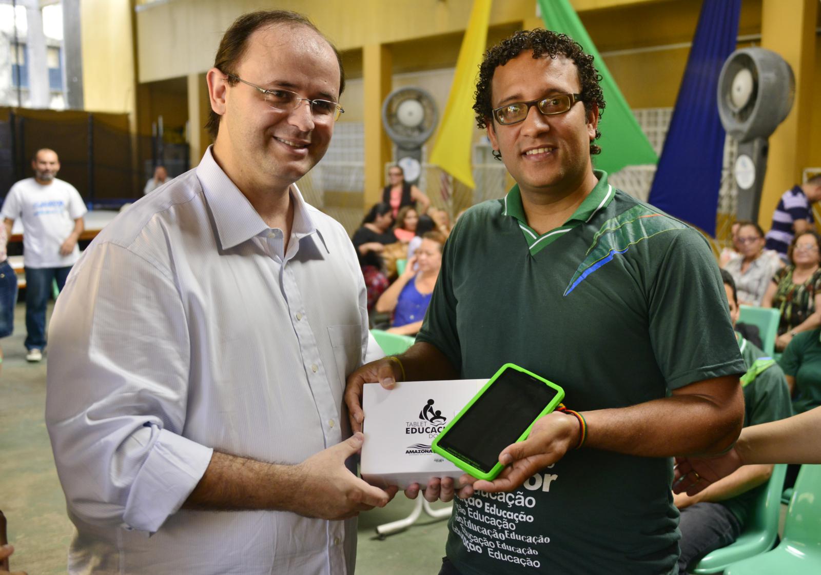 Os professores da escola estadual Nossa Senhora das Graças, na zona centro-sul, foram os primeiros da rede estadual de ensino contemplados com tablets repassados pelo Governo do Amazonas. O objetivo com a entrega dos equipamentos, que alcançarão todos os 16.557 professores do Estado, é aprimorar a atividade pedagógica dos professores, melhorando a qualidade do ensino na rede pública.