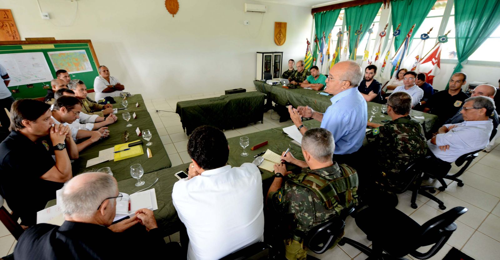 A reunião ocorreu no 54º BIS e contou com a participação do comandante-geral do Exército na Amazônia, general Villas Boas, delegados da Polícia Federal, o secretário estadual de Segurança Pública do Amazonas, coronel Paulo Roberto Vital, o comandante geral da Polícia Militar, coronel Almir David, delegados da Polícia Federal e representantes da Secretaria-Geral da Presidência da República e do Ministério da Justiça.