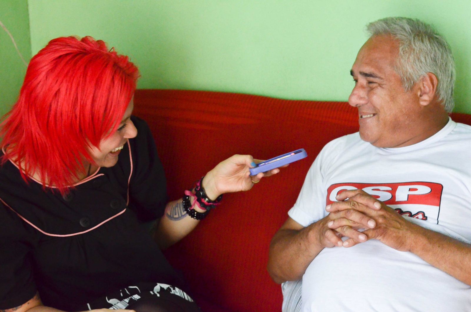 Já sim, tem sempre um porta-voz que tenta se aproximar. Vários já tentaram. Mas pra nós o que vale é a doação do nosso suor, doação de quem é trabalhador como a gente. Que seja 10 reais, 20 reais, nossa campanha só tem sentido se for esta parcela da população que nos ajudar. Esta é a nossa luta.