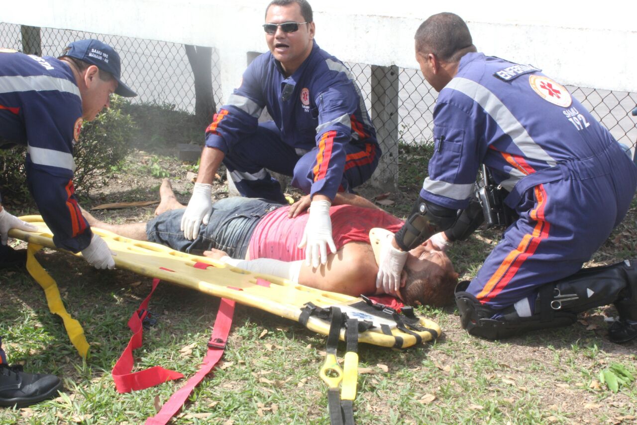 Edivaldo Silva de Queiroz, de 34 anos, foi jogado de um táxi muito machucado e socorrido por policiais e paramédicos depois que seguranças de uma empresa, na estrada do Marapatá, no Distrito Industrial, pediram socorro. A versão da vítima é de que taxistas o colocaram dentro de um veículo e estavam prontos para executá-lo em um varadouro, mas que ele conseguiu escapar.Queroz apresentava escoriações por todo o corpo, marca de chutes no abdomen, rosto e braços. Ele foi encaminhado ao pronto-socorro., A Polícia invesrtiga se a história dele é verídica ou se taxistas tentaram.linchá-lo em razão de algum delito cometido. Arenderam a ocorrência o sargento Freitas e o cabo Marcos Pereira, daq 7a Cicom