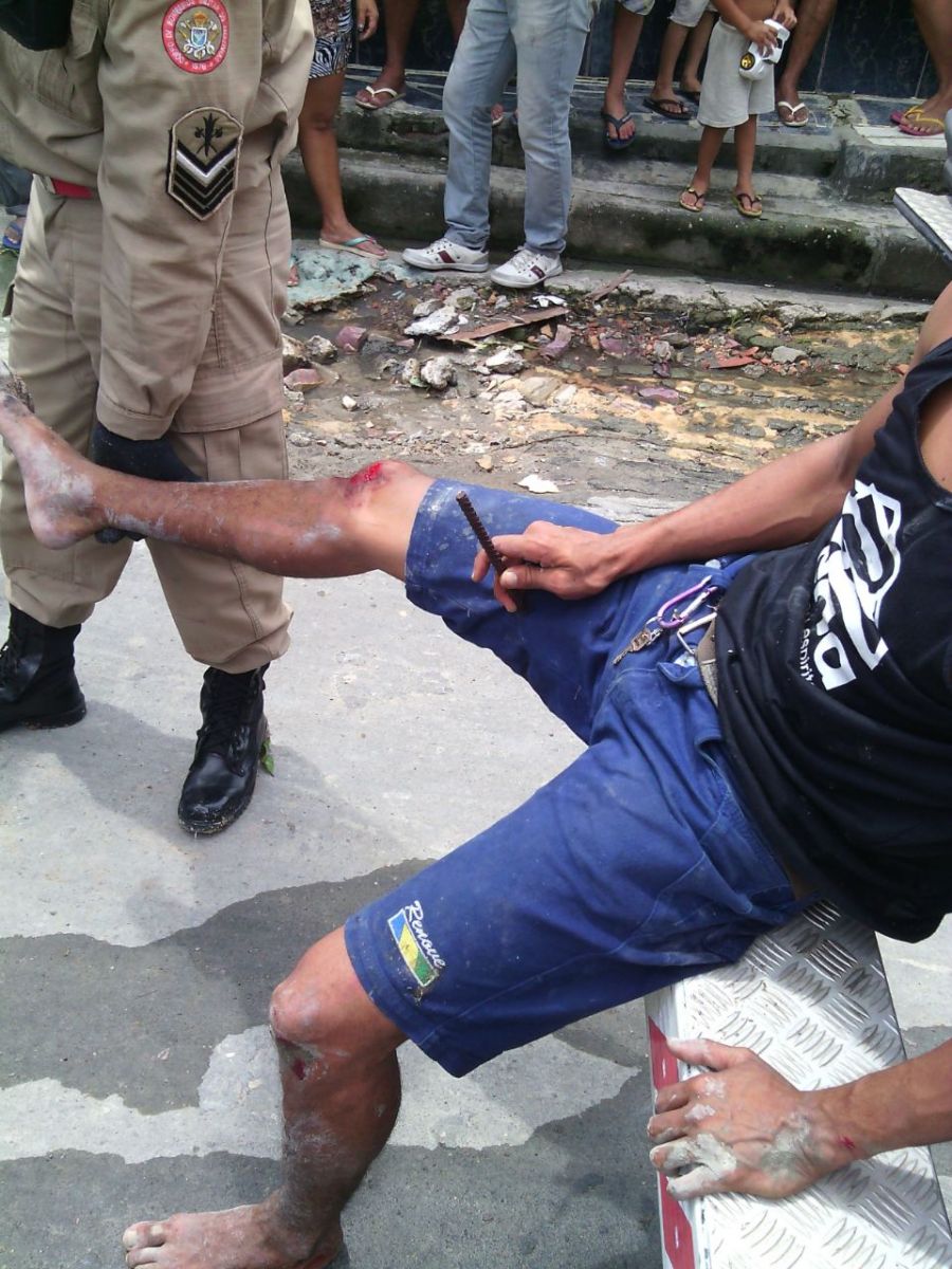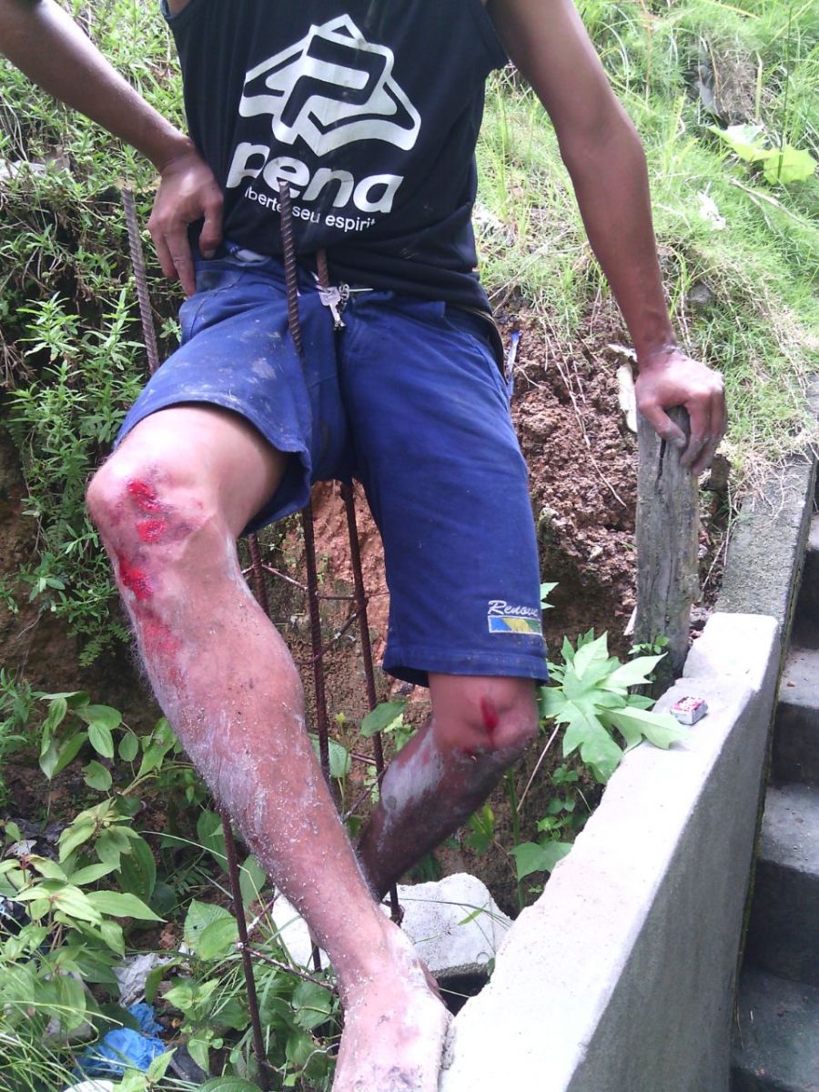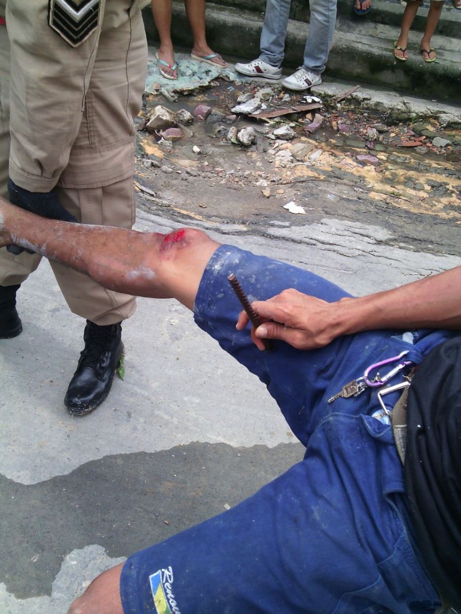 Janderson do Nascimento Lima, 28 anos, perseguido pela polícia na manhã desta segunda-feira, 12, por atitude considerada suspeita, na Rua São Cristóvão s/n, Bairro João Paulo II, escorregou num barranco e na descida teve a coxa direita atravessada por um vergalhão de uma coluna de um muro inacabado. Janderson ficou literalmente preso ao vergalhão. Depois de ser retirado do vergalhão, ele foi socorrido pelo Seviço de Atendimento Médico de Urgência (SAMU), e levado para o Pronto-Socorro Platão Araújo.