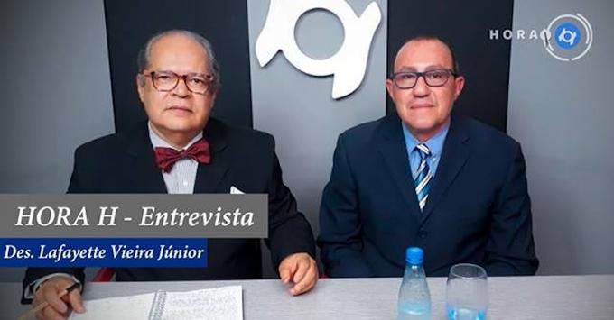 O desembargador Lafayette Carneiro Vieira - à direita - foi o primeiro entrevistado no novo formato