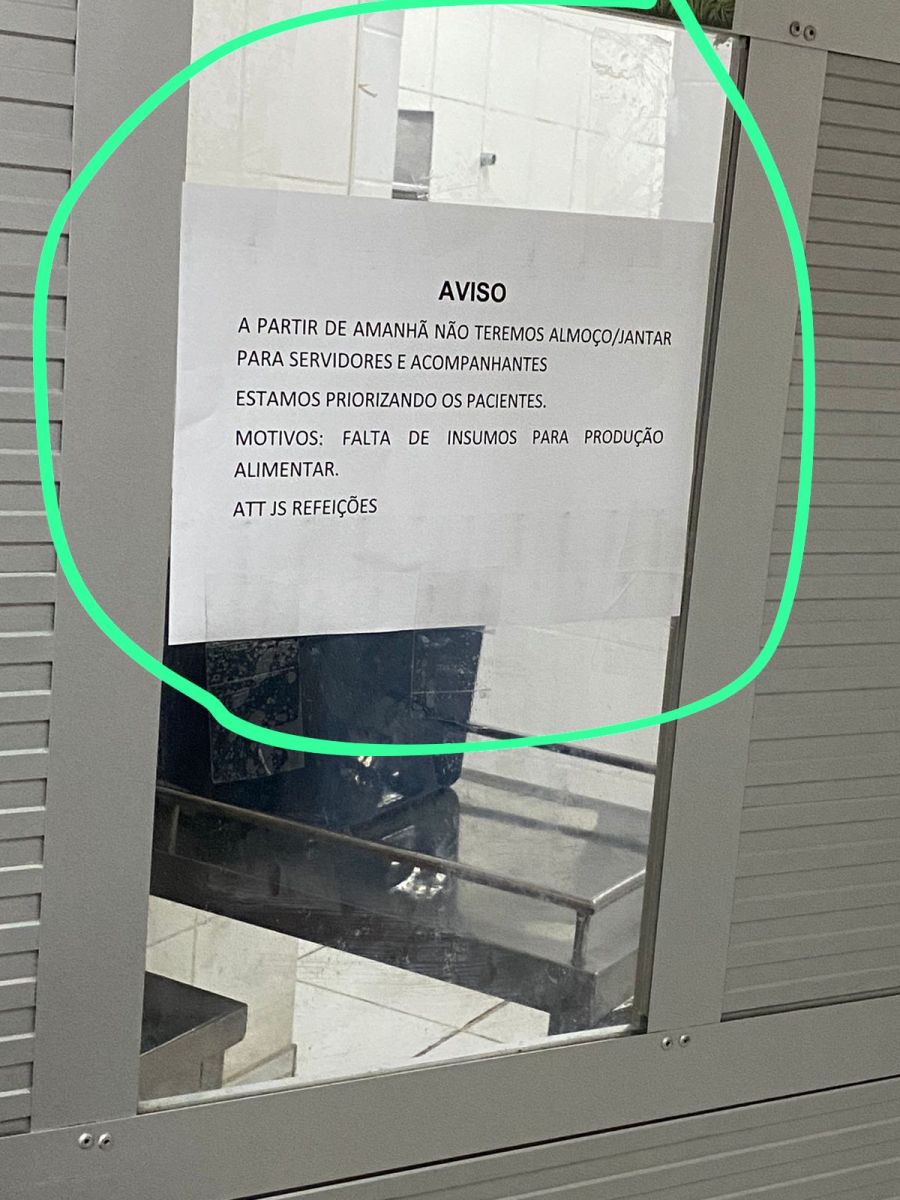 Att JS Refeições”, diz o aviso grudado em uma das portas do hospital.