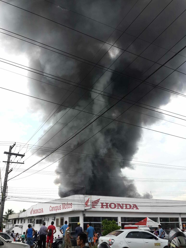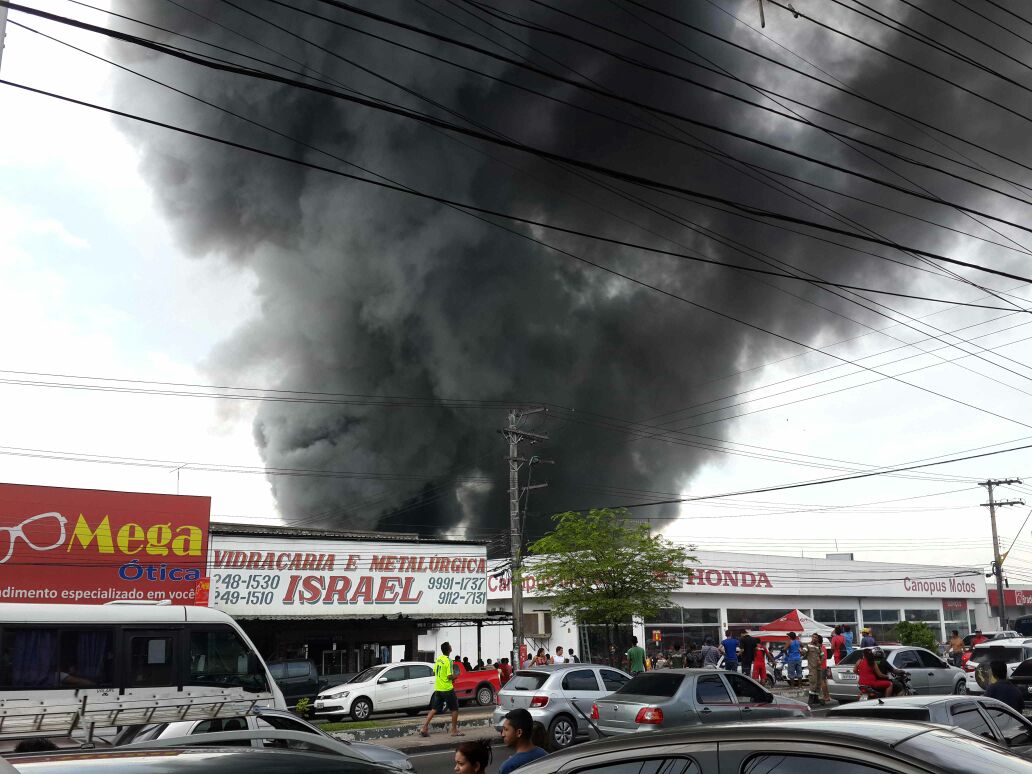 Um incêndio atingiu neste sábado um galpão industrial na Avenida Autaz Mirn, na Grande Circular, Zona Leste de Manaus, ameaçando diversas empresas estabelecidas na vizinhança, entre as quais uma concessionária Honda. O prejuízo soma mais de R$ 1 milhão, segundo o proprietário do imóvel. Os bombeiros chegaram ao local e evitaram que as chamas se propagassem para outras empresas e residências. Veja tambem vÌdeo clicando AQUI
