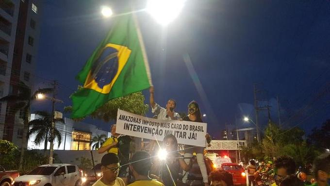 O grupo saiu do Vieiralves, zona Centro-Sul de Manaus e foi até a Ponta Negra, na zona Oeste, com faixas, cartazes e bandeiras pedindo redução no preço pago pelo consumidor na bomba de combustível. Ao final, parte deles se reuniu na frente do Comando Militar da Amazônia (CMA) como ato público de pedido de interferência das forças militares.