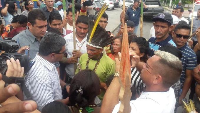 Manaus/AM  - Um grupo de indígenas se reuniu em protesto na frente da sede do Governo do Estado, na avenida Brasil, no bairro Compensa, na manhã dessa terça-feira (8).