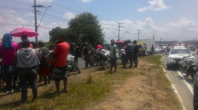 O grupo formado por diversas etnias ocupou a via em um ato pacífico protestando contra o recebimento de mandados de reintegração de posse para desocupação da área onde residem, no bairro Santa Etelvina.