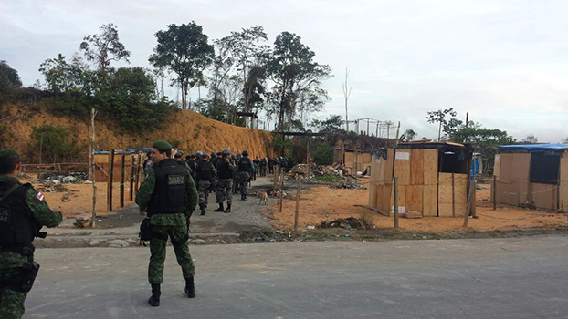 Manaus/AM - A reintegração de posse que a polícia militar e outros órgãos de segurança promovem na manhã desta quinta-feira, 16, começou a sofrer resistência de invasores por volta das 8h, que estavam alojados no terreno da Suframa.