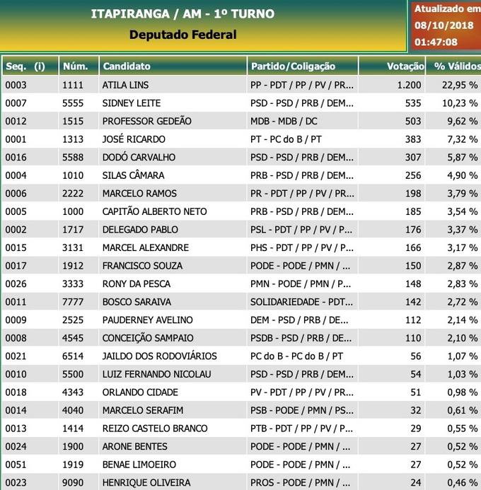 Itapiranga: Deputados federais - candidatos mais votados