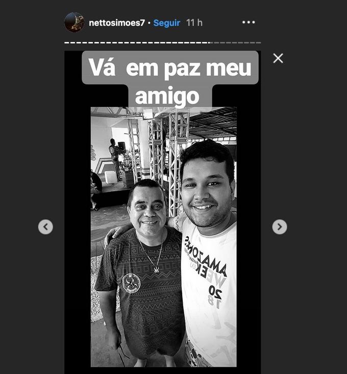 O Pajé do boi azul, Netto Simões se despediu nos stories, “vá em paz meu amigo”.