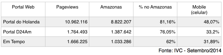 O Instituto Verificador de Circulação (IVC) responsável em medir e auditar a audiência de grandes sites como o “O Globo”, “Estadão” e “Zero Hora”, divulgou o resultado de acessos no mês de setembro e o site amazonense "Portal do Holanda" registra seu maior crescimento em 2014.