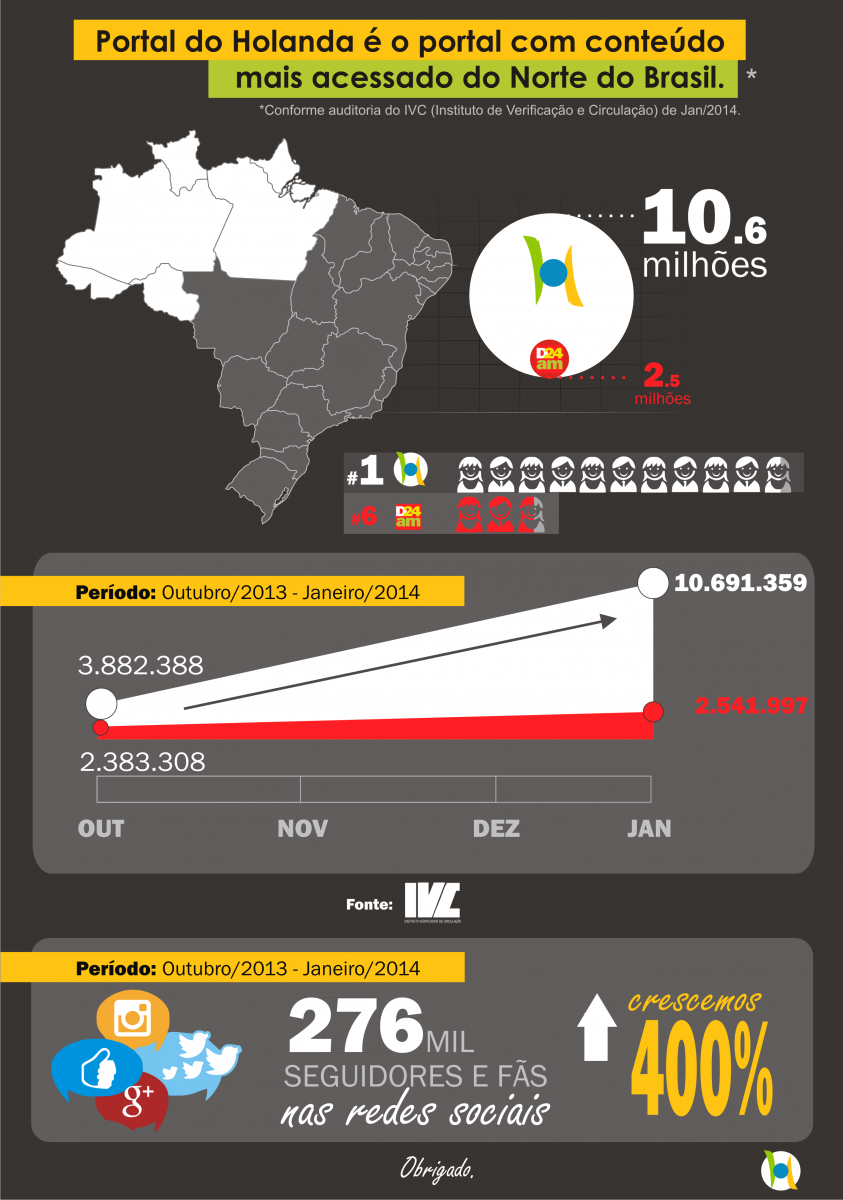 O Infográfico abaixo mostra o crescimento do Portal do Holanda também ans redes sociais. Confira: