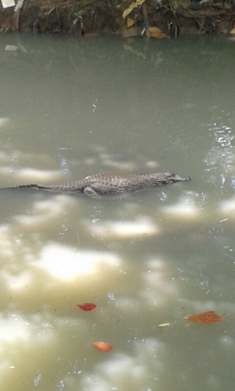 Um jacaré foi flagrado passeando no rip rap que cruza os fundos do DB da Ponta Negra.