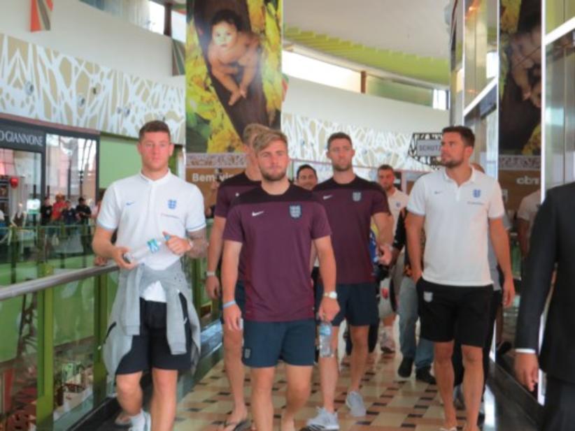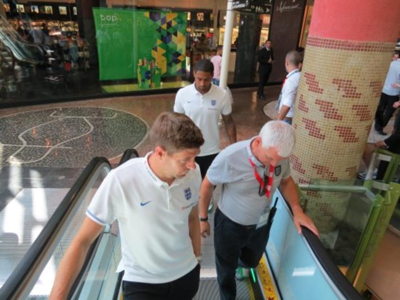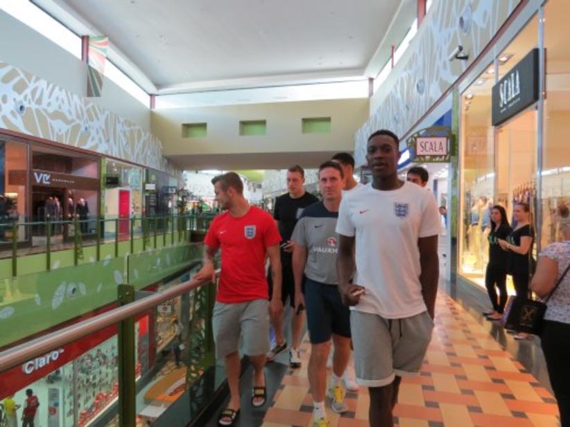 Os 23 jogadores, entre eles Gerrard e Rooney e o técnico Roy Hodgson chegaram ao centro de compras por volta de 10h30, quando se dividiram para conhecer o shopping. Seguidos pelos fãs e torcedores, alguns atletas fizeram questão de conhecer o buritizal e a praça de alimentação do shopping.