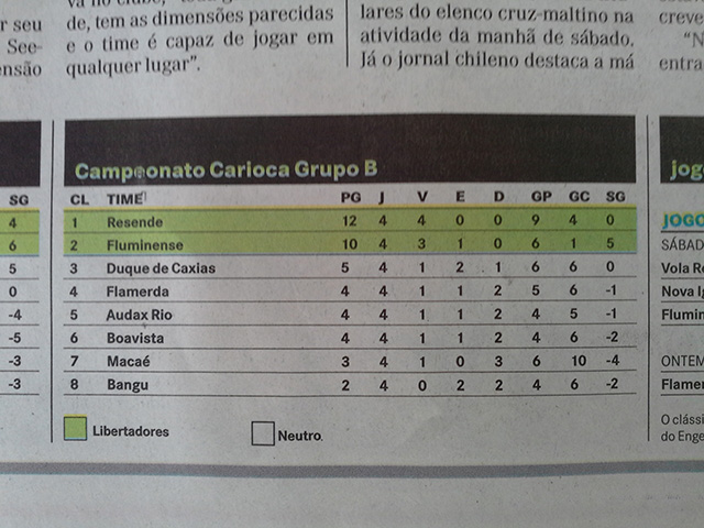 Jornal de Manaus xinga Flamengo na tabela de classificação do Carioca