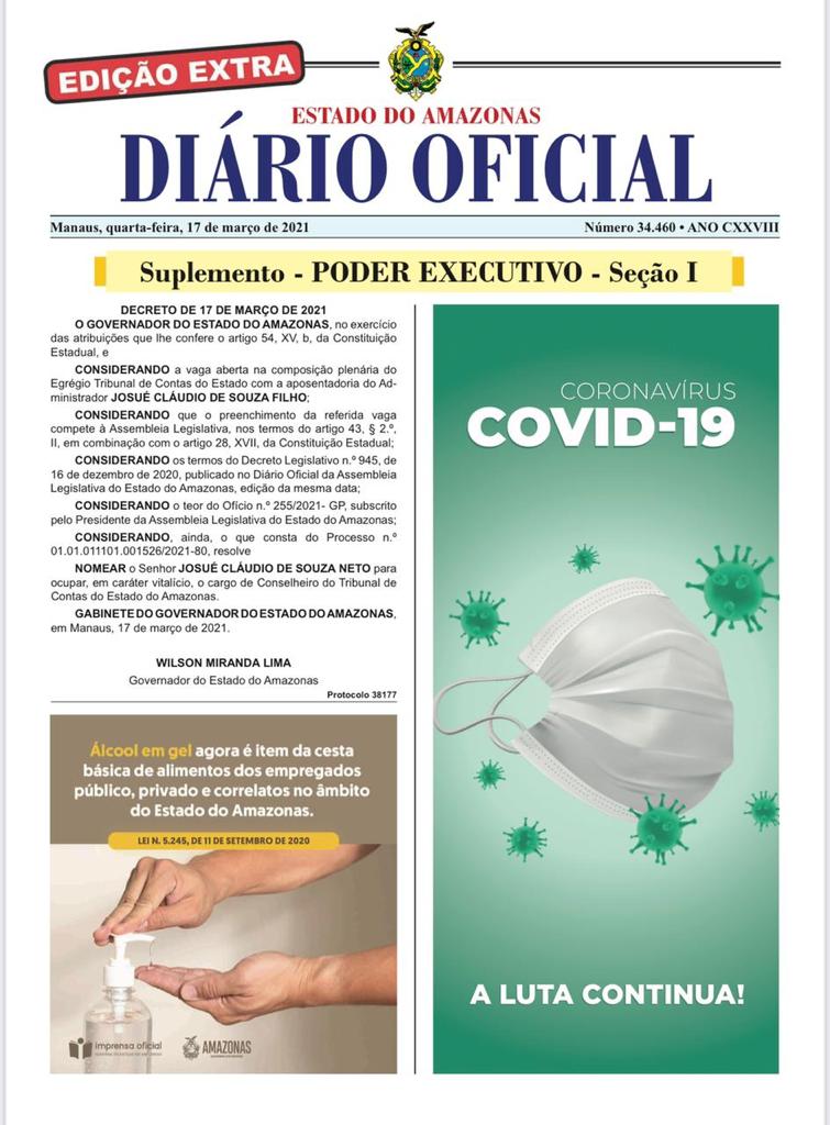 Manaus/AM - O deputado estadual Josué Neto foi nomeado nesta quarta-feira (17), conselheiro do Tribunal de Contas do Amazonas. A nomeação foi publicada em edição extra do Diário Oficial.