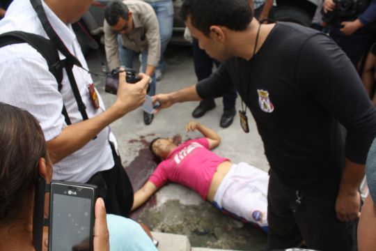 Os atiradores fugiram enquanto o corpo permaneceu no local até a chegada dos peritos do Instituto Médico Legal que removeram o cadáver.