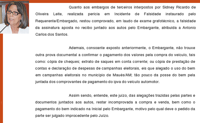 O funcionário público Antônio Carlos dos Santos conseguiu provar, atravé de exame grafotécnico, que os recibos de aluguel e compra do seu caminhão para a campanha do deputado estadual Sidney Leite (DEM), eram falsos.